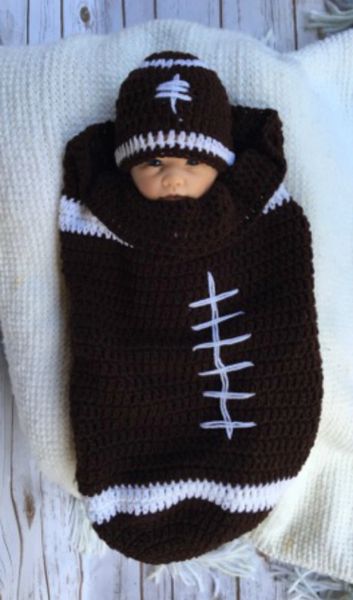 Football cocoon and hat for babies free Crochet pattern link here. As the baby grows you can just use the beanie. You can play around with different branded yarns as far as they give the synchronous flow of the pattern using a constant crochet hook. This is a PATTERN for a crochet cocoon and hat set shaped like a football. A swaddle and a hat. This free crochet baby pattern actually comes with two patterns as the name states. 265 392 yards Lion Brand Comfy Cotton Blend yarn Whipped Cream color pictured. Snuggle baby up in this soft and cozy Baby Cocoon and Hat. This adorable football cocoon is great for warmth photo props or for everyday fun.